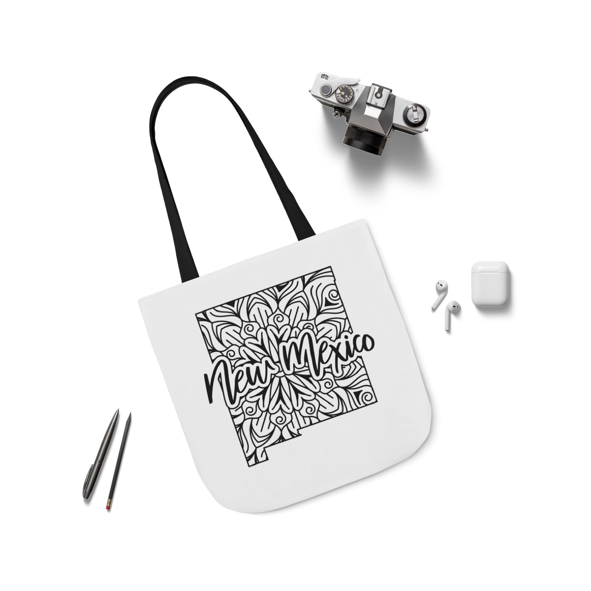 Introducing our exclusive New Mexico Mandalay Polyester Tote Bag – a fusion of vibrant design and practical functionality. Elevate your style while showcasing the beauty of the Land of Enchantment with this unique accessory featuring a mesmerizing Mandalay pattern inspired by the rich cultural tapestry of New Mexico. Durable Elegance: Crafted from high-quality 100% polyester, this tote bag is not only visually stunning but also durable enough to withstand your everyday adventures. Whether you're heading to the market or strolling through town, this tote is your reliable companion. Eye-Catching Design: The New Mexico Mandalay design is a visual symphony of colors and patterns, inspired by the state's diverse cultural influences. The mandala motif reflects unity, balance, and the interconnectedness of all things, making it a powerful and meaningful accessory. Spacious and Practical: With ample space, this tote bag is perfect for carrying your essentials, whether it's groceries, books, or daily necessities. The polyester material is lightweight, making it easy to fold and pack when not in use, ensuring convenience on the go. Versatile Style: The New Mexico Mandalay Polyester Tote Bag effortlessly combines style and versatility. Pair it with your casual outfit for a bohemian touch or use it as a statement piece to add a pop of color to any ensemble. Express your love for New Mexico with flair. 🛍️ Perfect Gift: Searching for a unique and practical gift? Look no further! The New Mexico Mandalay Polyester Tote Bag is a thoughtful and stylish present for anyone who appreciates the beauty of cultural design and values functionality in their accessories. 100% Poloyester Wash In Cold Water Tumble Dry Low Heat Free Shipping Ships from US US Shipping only * We do not accept returns or exchanges due to customized printing, however if you have an issue with your purchase please contact us immediately and we will do all we can to make it right. Thank you for supporting our small family business!